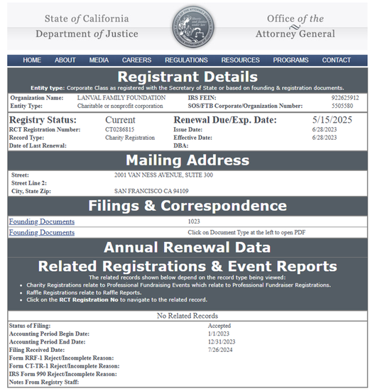 Lanval Family Foundation’s Federal Taxpayer Id Number is 92-2625912.